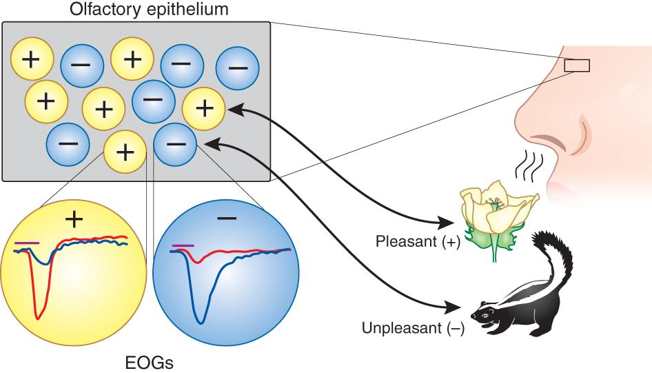 New technique electro-oflactogram (EOG) records olfaction in humans–finds smells arranged by pleasantness